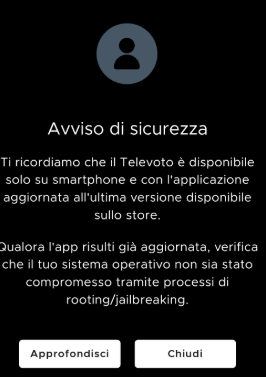 Se il dispositivo risulta compromesso, si consiglia di ripristinare lo stato originale rimuovendo tali strumenti (ulteriori dettagli: Avviso di sicurezza: Informativa rooting/jailbreak – Mediaset Infinity)